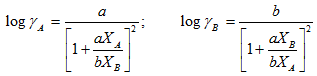3. The Gibb's-Duhem equation for the binary system for checking thermodynamic consistency of the data by the integral test: